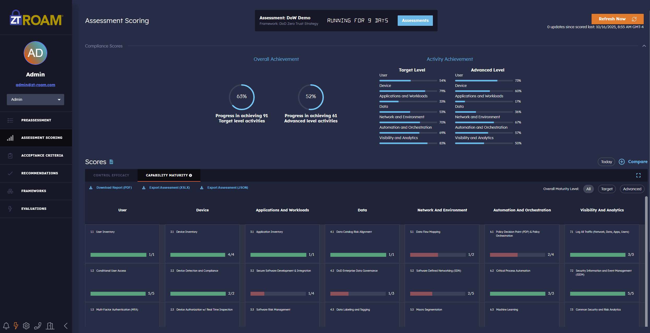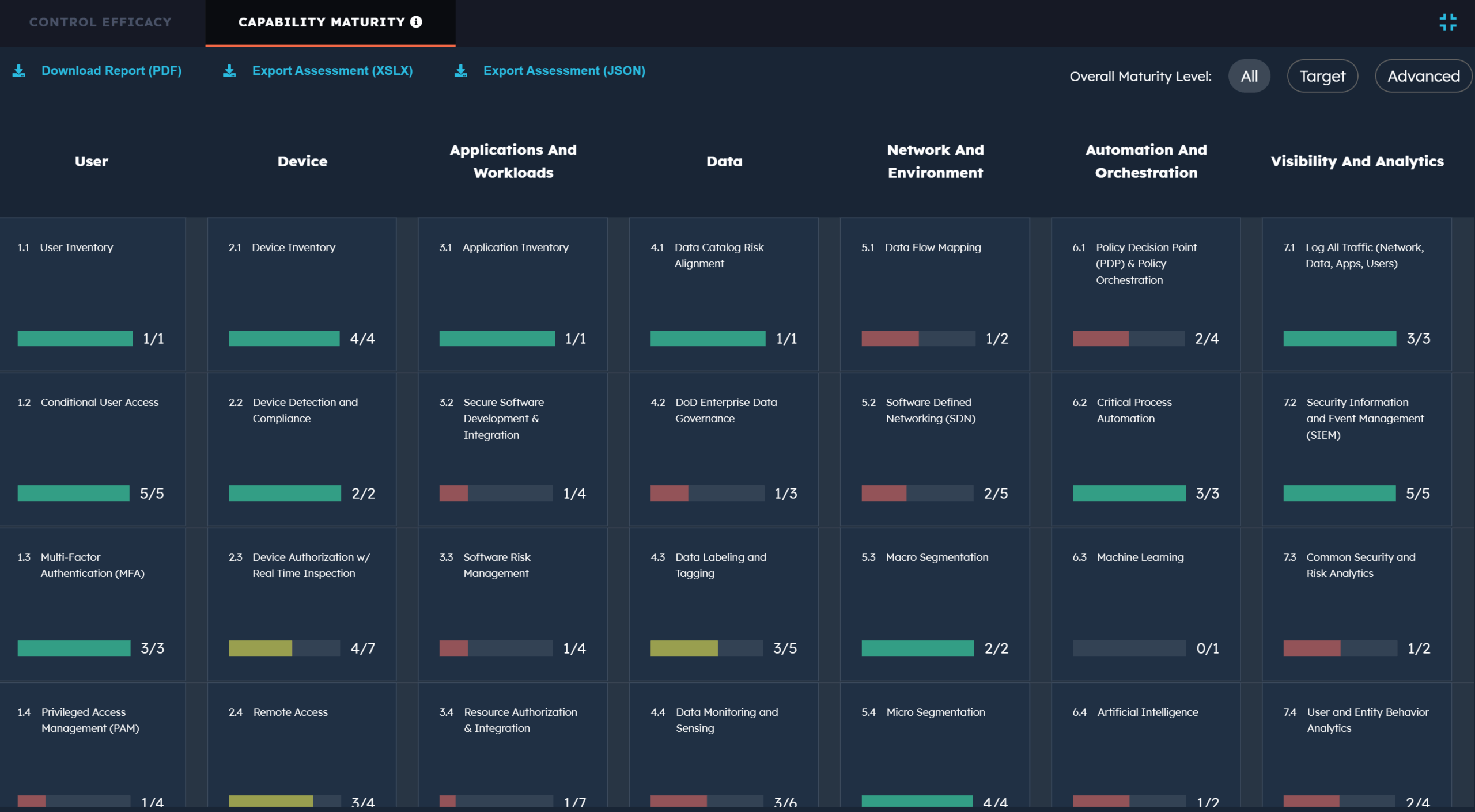 Our Zero Trust assessment tool validates and visually depicts which zero trust capabilities and activities have been achieved across government and industry frameworks. Your organization’s zero trust capabilities and policies are validated based on our innovative zero trust threat-based assessment methodology.